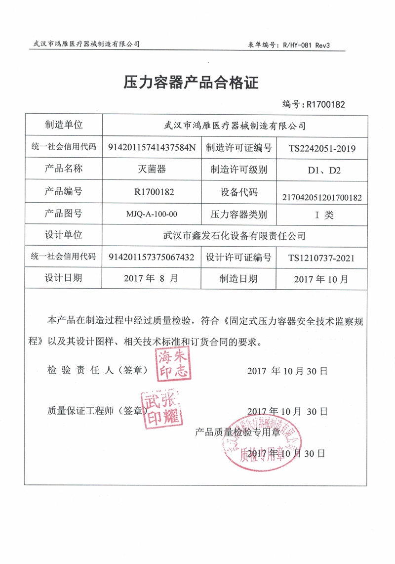 武漢市鴻雁醫療器械制造有限公司主要從事醫療器械、各規格壓力蒸氣滅菌器以及食品、環保等設備的制造。公司產品受鍋爐壓力容器檢驗研究院和食品藥品監督管理局雙重監檢,每臺設備均有自己的身份銘牌。公司始終不渝地堅持科技興企、科學管理的方針,重視科技進步為企業帶來的機會和效益,努力將新技術成果轉化為產業優勢,秉持以品質穩定、產品革新、客戶滿意為公司宗旨。與客戶共創雙贏的局面,分享各項成果,回饋社會。